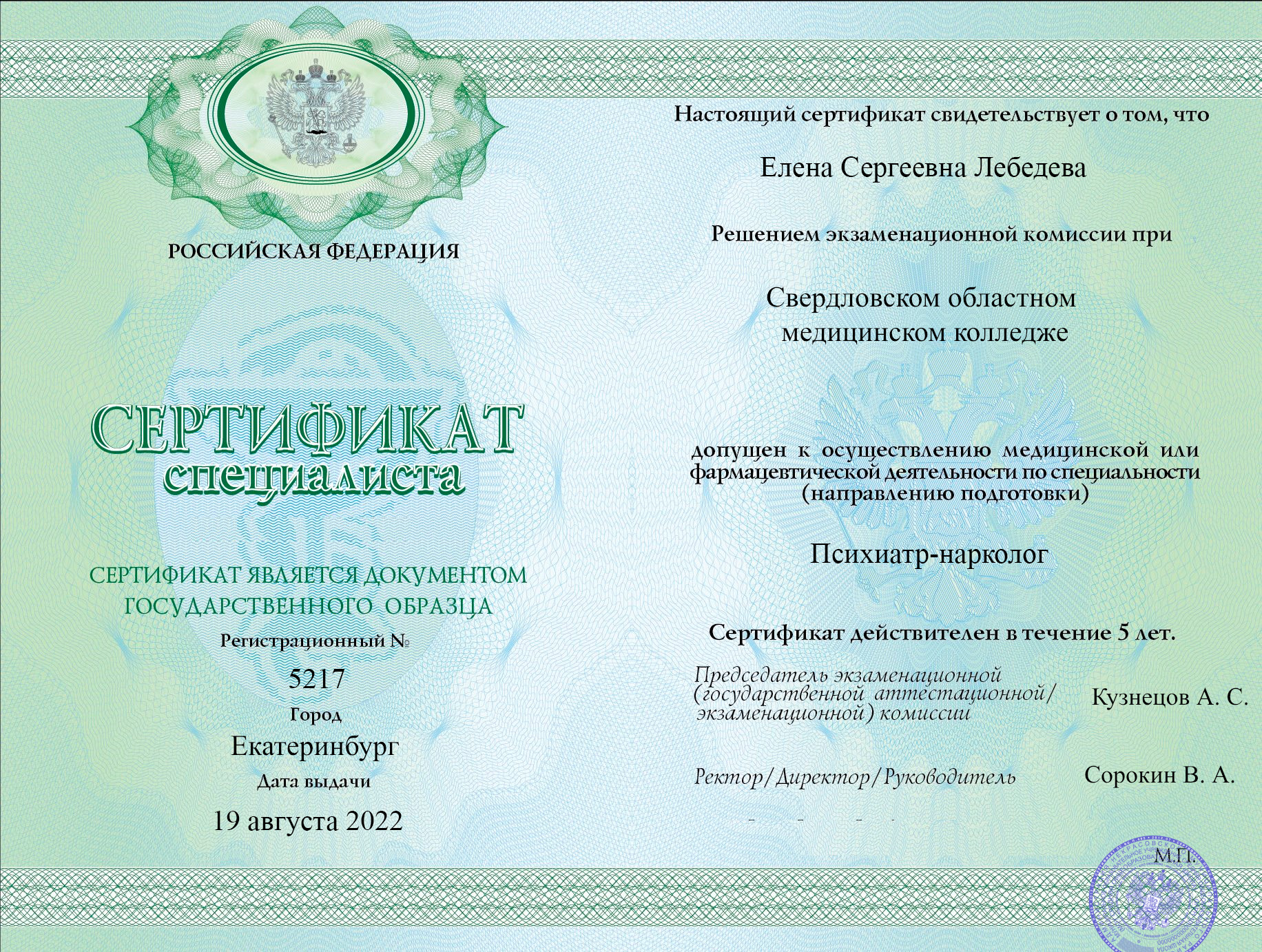 Елена Сергеевна Лебедева врач нарколог клиники доктора Стукаловой в Оленевке